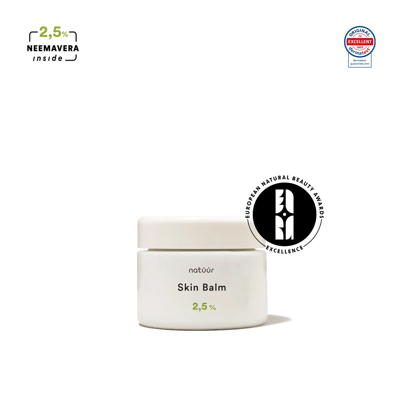 Unser ausgezeichnetes Produkt Skin Balm überzeugte vor allem durch unseren eigens entwickelten, patentierten Neem-Extrakt NEEMAVERA®. Mit 2,5 %iger Konzentration haben wir die reichhaltige Pflegesalbe speziell für stark gereizte und zu Irritationen neigende Haut formuliert — sie schmilzt durch die Hautwärme sofort, beruhigt unmittelbar und eignet sich besonders als therapiebegleitende Pflege bei Psoriasis und Neurodermitis.