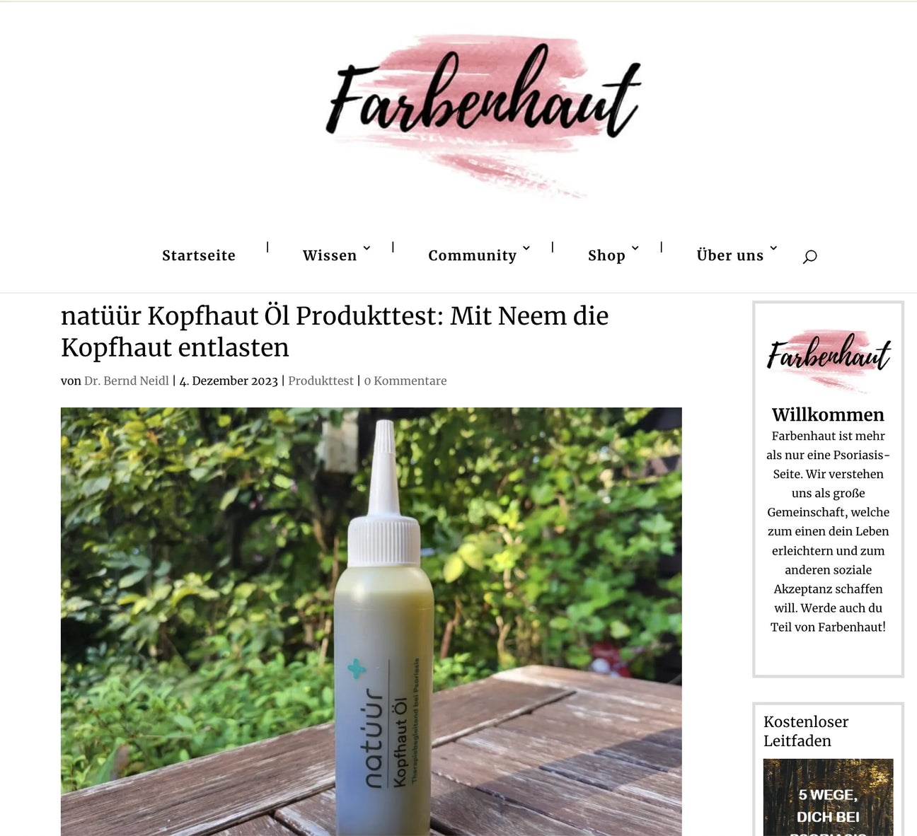 natüür bei Farbenhaut - natüür Kopfhaut Öl Produkttest: Mit Neem die Kopfhaut entlasten